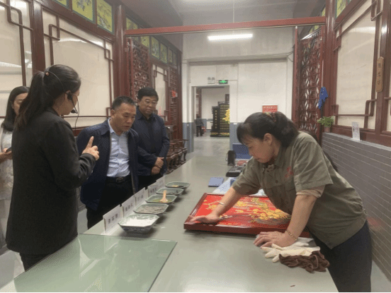 随后,一行人实地走访了山西省平遥牛肉集团有限公司和平遥唐都推光漆器有限公司。在参观平遥牛肉集团生产车间时,详细了解了平遥牛肉生产销售过程、产业结构、年产值、用人情况和薪资待遇等情况。