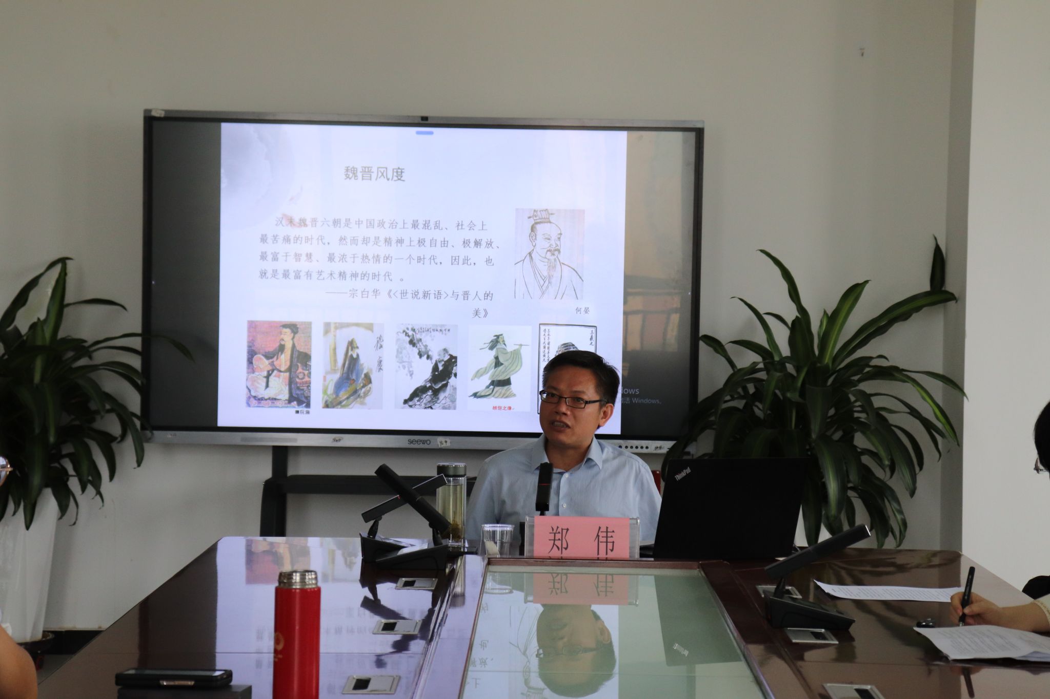 活动伊始,学院刘艳清老师简要介绍了郑伟教授的学术背景与研究成果,强调了魏晋南北朝时期在中国文化史、思想史中的重要地位,引出“魏晋风度”这一论题。郑伟教授以“生命的悲苦与解脱”为切入点,结合《古诗十九首》《蒿里行》《七哀诗》等古诗名篇,揭示魏晋时期士族失志、动荡离乱、佛道炽盛、生命悲苦背景下文人的生存困境。他援引宗白华“魏晋是中国政治上最混乱、社会上最苦痛的时代,然而却是精神史上极自由、极解放,最富于智慧、最浓于宗教热情的一个时代,因此,也就是最富有艺术精神的一个时代”的论断,指出魏晋士人在荒诞黑暗的社会现实和儒学式微、玄学兴起的思潮碰撞中,通过醉心清谈、寄情山水等行为,解脱自我,构建起独特的精神家园。