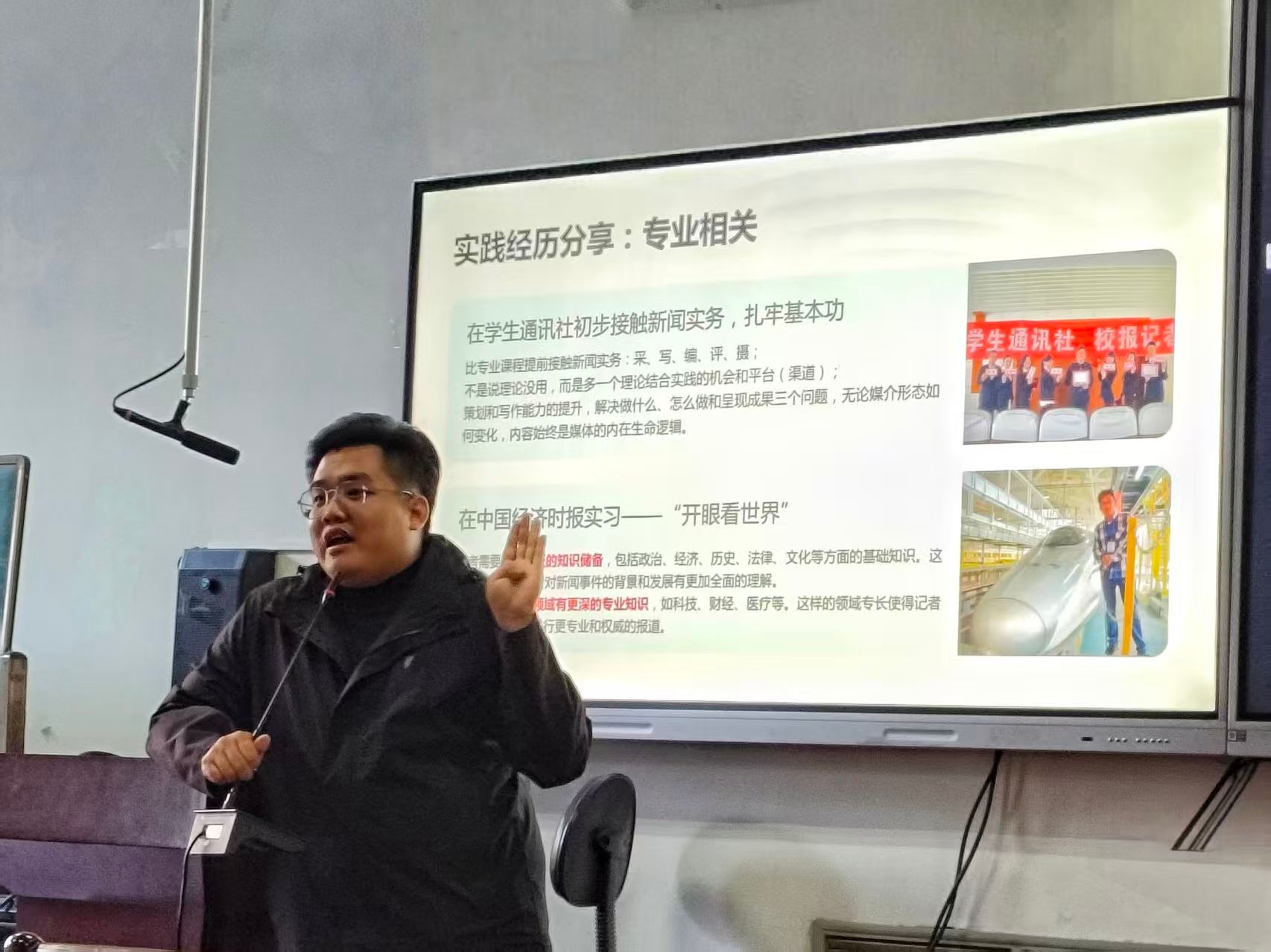 在接下来的互动环节,学院新生围绕“如何平衡课程学习与实践活动”和“新媒体时代如何坚守新闻初心”等问题踊跃提问,胡祺结合行业现状逐一解答,强调“无论媒介形态如何变化,对真相的追求和表达的严谨性永远是新闻人的立身之本”。针对新生成长困惑,胡祺建议充分利用校园资源,通过社团实践、专业竞赛夯实基础,借助本专业和双学位拓展视野,构建“新闻+专长”的能力体系。